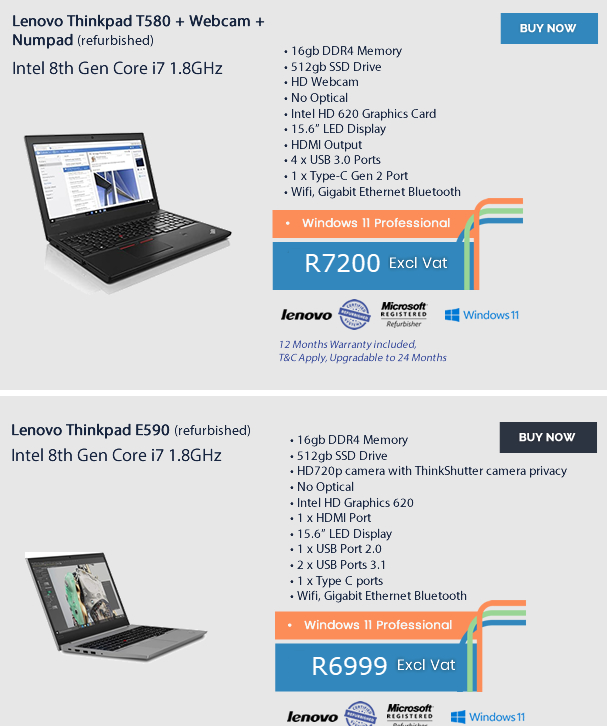 All refurbished computers and laptops are A-grade quality and come with a 1-year warranty, and are upgradable to 2 years. Stock turnover is high, so please call or email us to check availability.
